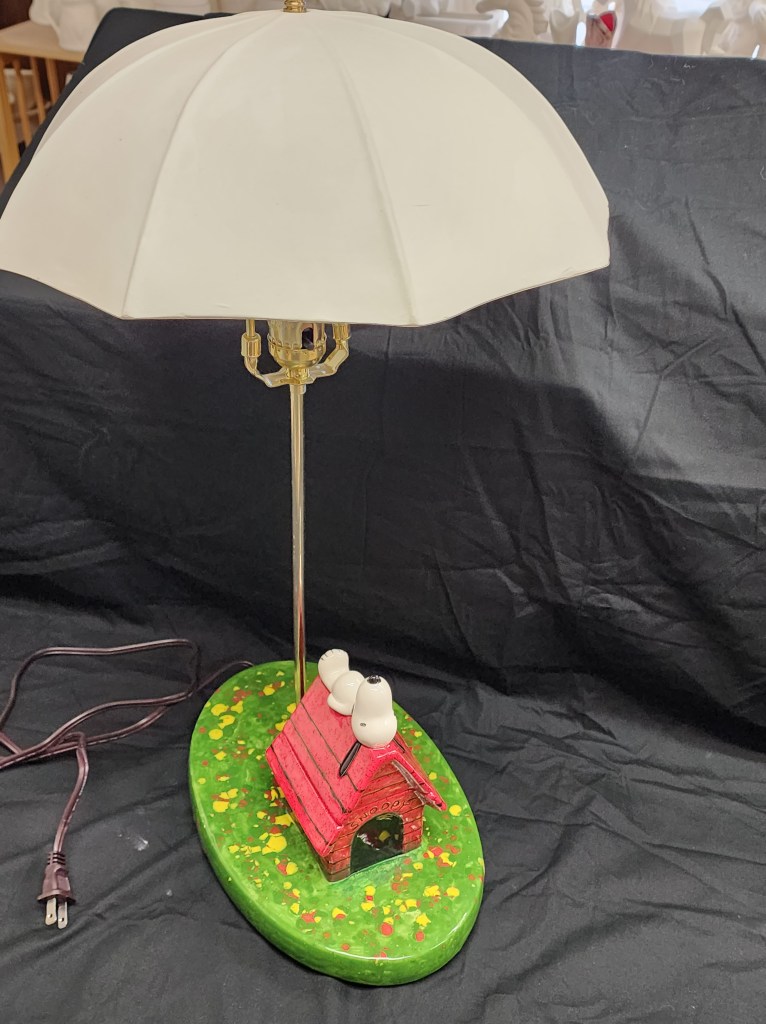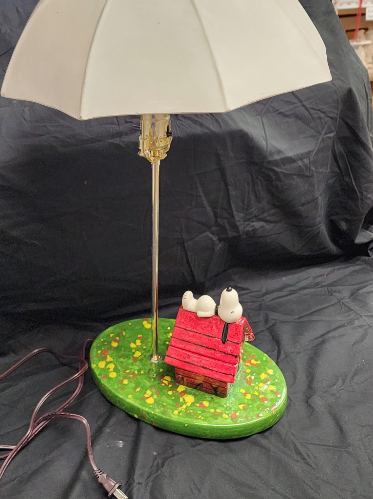 This was a Snoopy lamp we did for a customer. The lamp shade was not included, it was just added so it looked like a lamp.